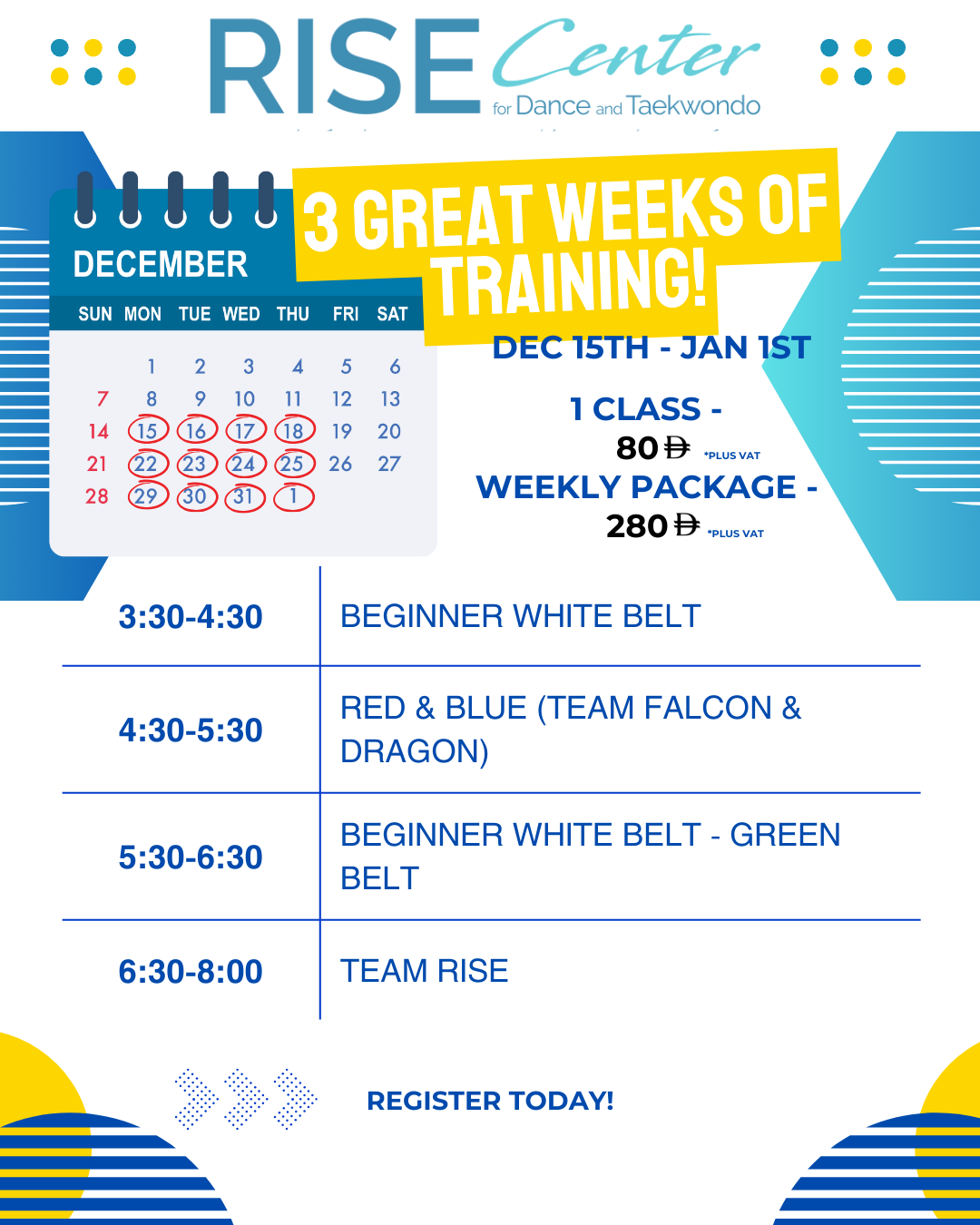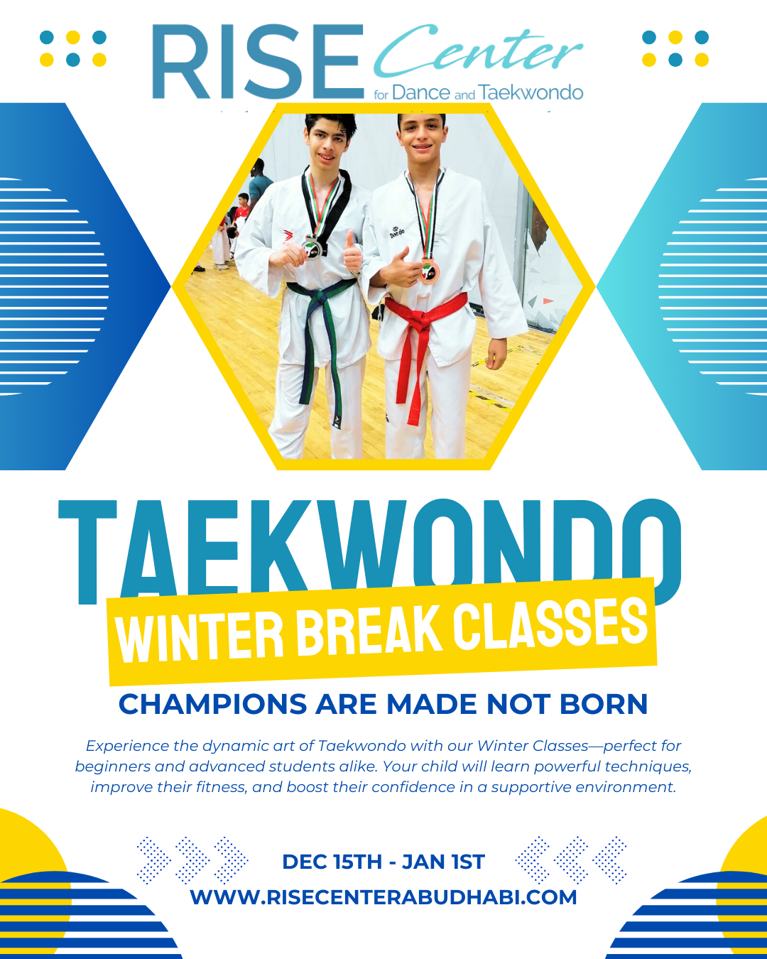 Does you child spend most of the school holidays on their tablet? Do you want to make sure they get exercise and have fun everyday? Our Taekwondo classes are going to get your child moving every day, learning new skills and building confidence! Send Us a message RISE CENTER FOR DANCE AND TAEKWONDO+971 58 588 7473 (RISE)AL RAYYANA Plaza, ROOF LEVELKHALIFA CITY A, ABU DHABI, U.A.E.